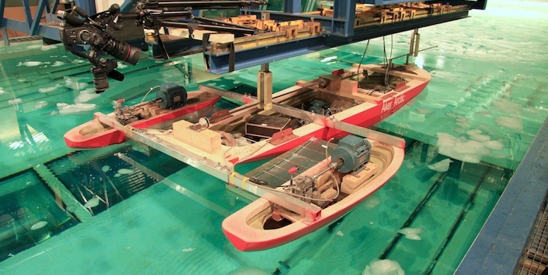 ”The channel made by the trimaran was almost completely clean. The ice had been pushed to the sides. In that kind of channel it would be easy for any vessel to proceed.”